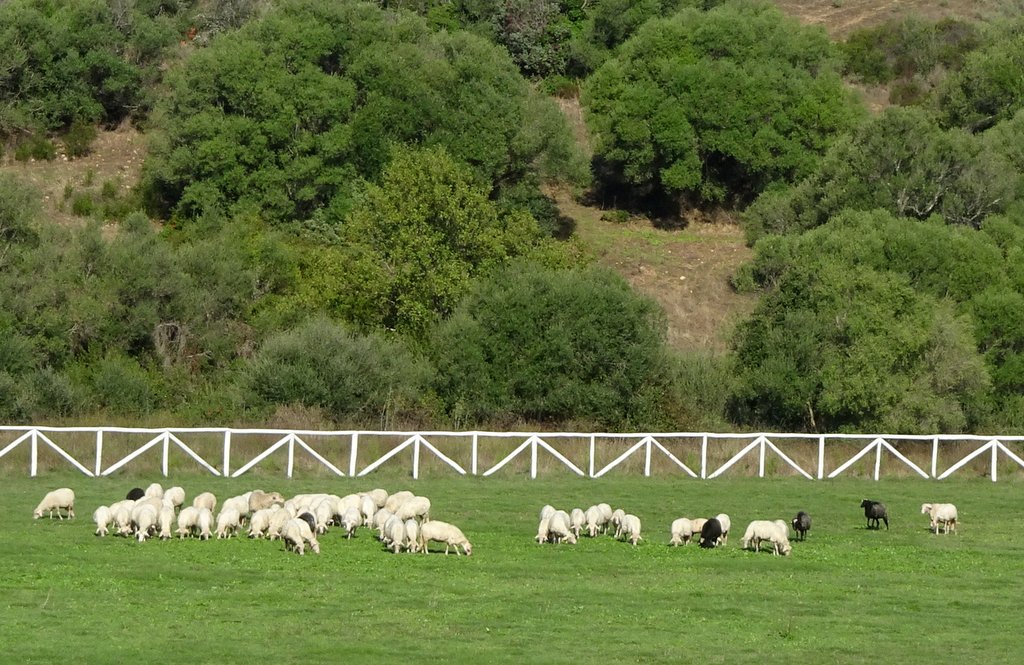 Versant Est de la Sardaigne, on trouve des cultures connues : ici la vigne est reine. D'immenses étendues de vigne à culture traditionnelle sont présentes qui enjolivent le paysage. Des troupeaux de brebis sont aussi présents gardées par le réputé Patou, chien blanc des Pyrénées, qui a l'oeil et … la gueule pour avertir lorsqu'un mouvement inhabituel se fait sentir. Il fait son boulot ! Les deux tiers du trajet aujourd'hui se font en parallèle à une quatre voies interdites aux cyclistes. C'est une ancienne route, large, qui est devenue délaissée par les véhicules, donc excellente pour une piste cyclabe. Un bonheur de la parcourir et, en plus, les descentes sont plus fréquentes que les montées. Sous la pluie, c'est une bénédiction !