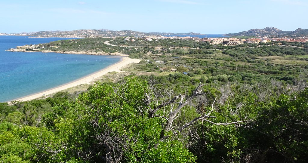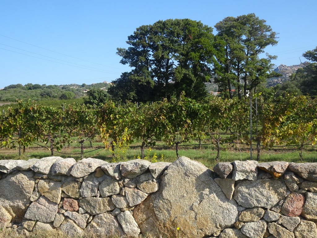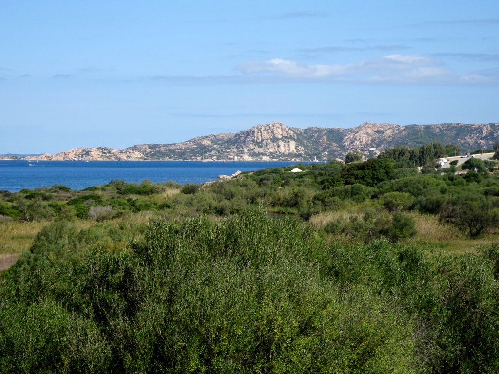 Le trajet se déroule sans histoire sauf un coup de gueule contre un automobiliste qui est passé beaucoup trop près du vélo. J'ai appris qu'il ne fallait pas accorder trop d'importance aux panneaux situés sur les bords des routes : kilométrage approximatif, déviation « obligatoire » mais … qu'il est préférable de ne pas emprunter (aux dires des ouvriers d'un chantier qui m'ont recommandé de ne pas la suivre). La végétation est un maquis d'origine probablement récente liée à la déprise agricole. Quelques vaches, un peu de foin en boules, des vignes plutôt visibles vers Valledoria ainsi que du maréchage sur de grandes surfaces dans cette zone. Quelques plantations d'oliviers, d'amandiers. Les murets de clôture en assemblages de pierres sèches sont encore présents, souvent mangés par la végétation. On trouve toutefois de nombreux points d'achats possibles en « local bio fermier » de chèvres, de fromages, de vins.