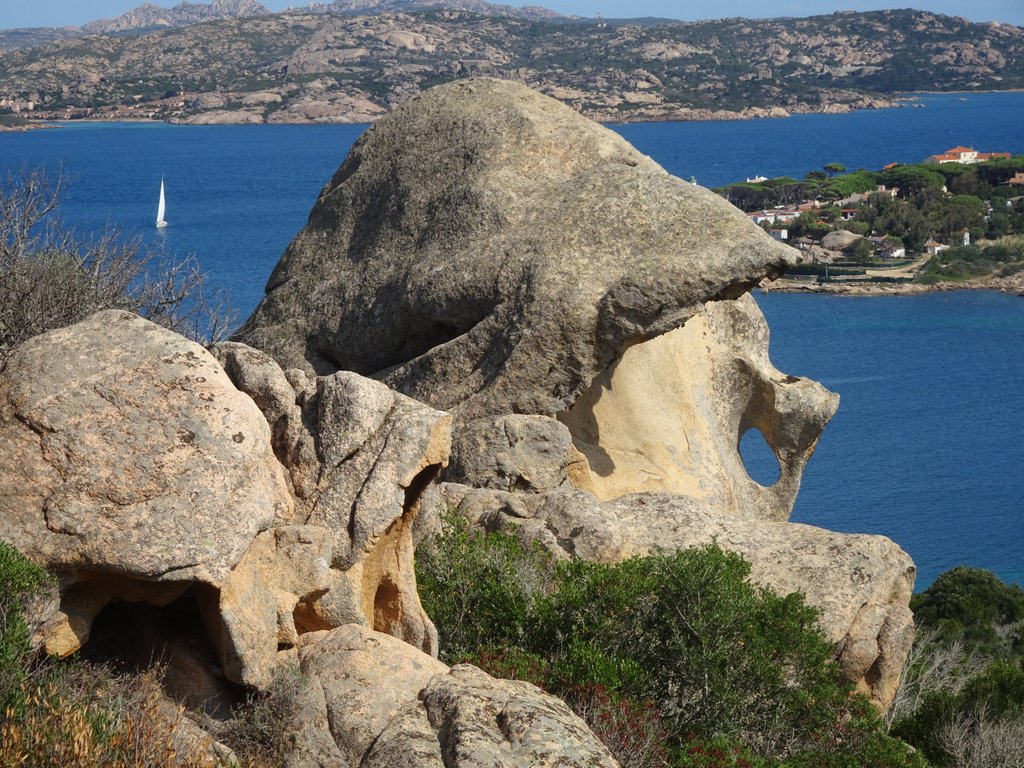 L'étape est courte. Je pense aller rendre visite à Palau, une cité probablement très touristique qui se situe face aux îles Maddalena très habitées avec des ferries qui font les navettes quotidiennes, dominée par la forteresse de Monte Altura. De fait, de belles plages, un panorama immense rendent très attractive cette ville de Palau. De très curieuses et originales configurations rocheuses caractérisent aussi cette région avec des formations granitiques rondes et sculptées naturellement. Palau, cité culturelle aussi qui possède un musée ethnographique. J'ai pu admirer une exposition de photographies (tirages papier de 80 cm x 60 cm) sur le thème générique de la souffrance, la plupart étant des saisies de visages dont l'expression révéle des situations terribles avec bien plus de force que la seule écriture ne pourrait le faire.