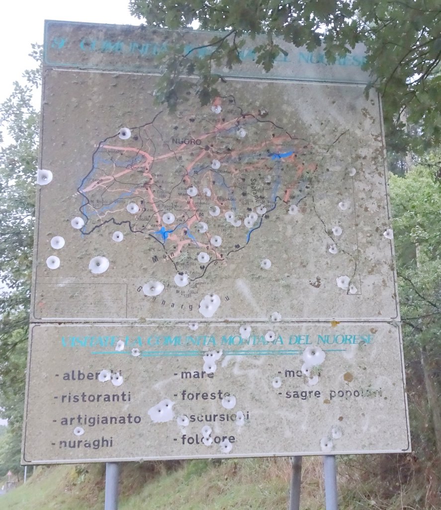 Les pluies incessantes toute la nuit ne se sont pas calmées ce matin. Je me suis donné jusqu'à 10h pour espérer partir. Comme j'avais un peu d'avance sur mon programme, j'ai opté pour un repos de récupération. C'est curieux ces sautes de pluie avec pas mal de vent : en forme de giboulées. Ca m'a permis d'aller faire quelques photos des réputés murs peints de Orgosolo. J'en mettrai quelques-unes après ce texte lors de mon retour a casa !
