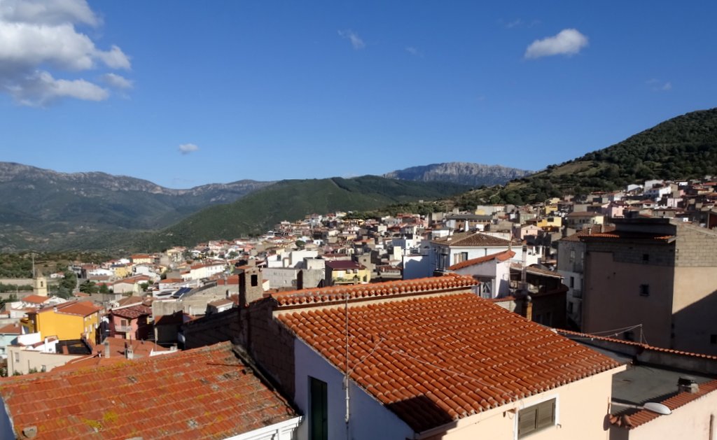 Les kilomètres s'égrènent quand même. Orgasolo est en vue non sans efforts (près de 1800 mètres de dénivellation positive cumulée aujourd'hui). Petite ville tout en pentes très fortes avec cette particularité de peintures murales dans beaucoup de maisons (environ 400 - j'ai mis une photo en page d'accueil du site, prise en arrivant cet après-midi).
