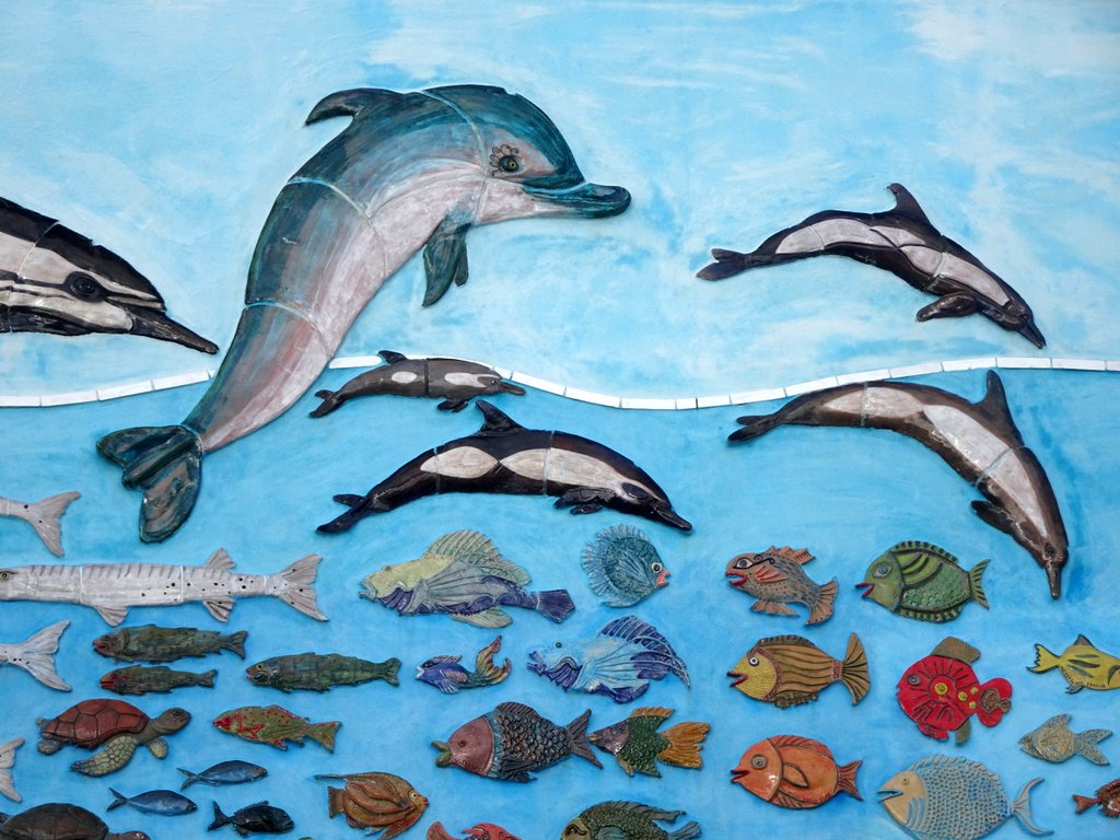 La Calette a des fresques murales immenses peintes sur les digues du port. Ca crée un peu de poésie dans une petite ville qui cherche le touriste. Ce matin, départ tranquille avec un ciel bleu magnifique. Tout peut arriver donc en Sardaigne ? J'ai pris l'option de prendre les petites routes qui s'approchent le plus des rivages. Une grosse 4 voies a été construite, voie rapide vers Olbia. Très fréquentée, peut-être interdite aux deux roues, la petite route provinciale est, ce matin, idéale pour pédaler. Pas trop de véhicules, une chaussée pas trop abîmée, et surtout un petit air frisquet qui fait beaucoup de bien aux neurones, surtout quand on lève la tête et que l'on voit un ciel de rêve.